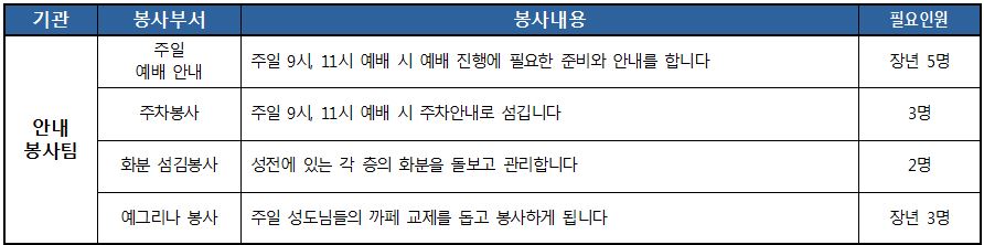 예배안내 및 주차봉사자 모집 [세교성전]