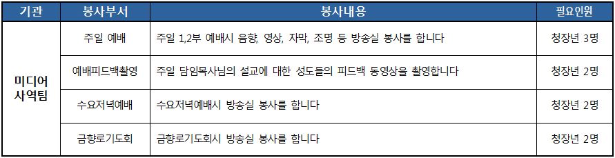방송실 미디어사역팀 봉사자 모집 [세교성전]