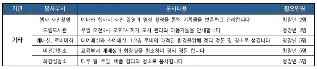 사진촬영.드림도서관.교회청소 봉사자모집(궐동성전)